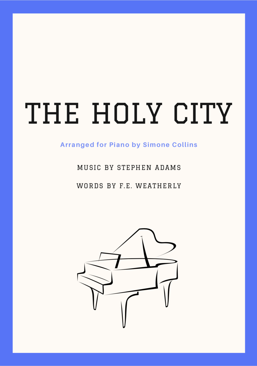 An arrangement of "The Holy City" by Stephen Adams for intermediate piano, with lyrics included.